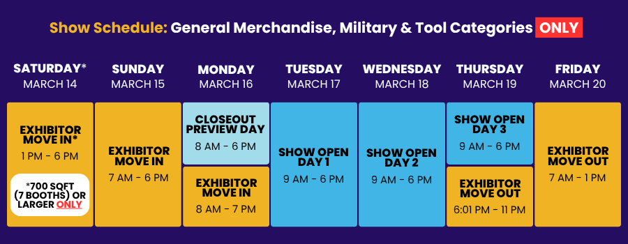 Targeted Move-In Schedule for Exhibitors in General Merchandise, Military & Tool Categories ONLY